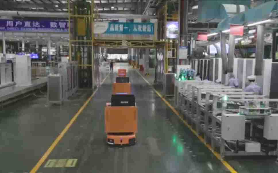 为车载冰箱物流配送打造的智能解决方案,,,包含产中物流通过潜伏举升AMR搬运至线边,,,,产后成品物流智能仓储,,流程包含产中物流智能齐套入库,,,,线边安灯叫料AMR智能配送至线边,,,,成品入库、、出库,,,通过无人堆高车机器人,,,智能仓储管理替代人工作业管理,,,实现更高存储、、更高效率、、、更具柔性化的解决方案。。